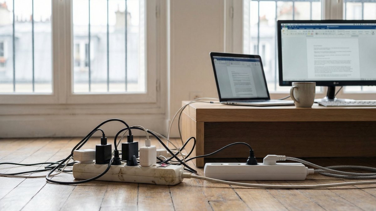 En France, plus de 4 salariés sur 10 télétravaillent au moins occasionnellement selon la Dares. Dans les faits, cela signifie des milliers de rallonges électriques, multiprises fatiguées et ordinateurs surchauffés... dans des logements qui ne sont ni conçus ni contrôlés comme des bureaux professionnels.